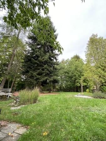Es ist mit 1.454 m² nicht nur sehr großzügig, sondern auch uneinsehbar und grenzt an ein kleines Bächlein, mit wiederum angrenzendem Grundstück eines Kleintiervereins mit Pferden.